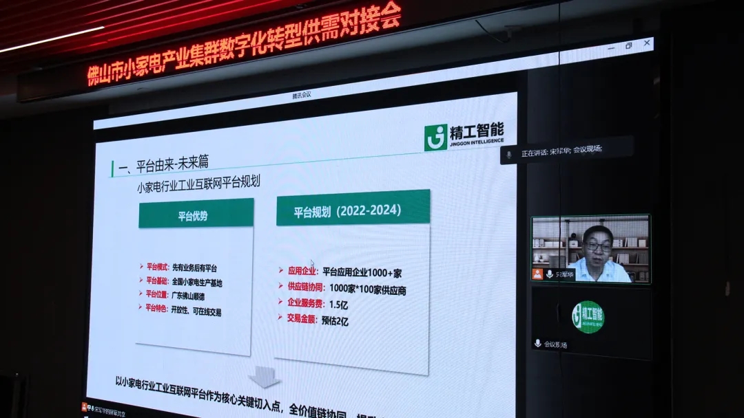 作为数智工厂解决方案服务商,如何更好地帮助企业推行数字化,精工智能有发言权。精工智能聚焦小家电产业集群,会上,副董事长宋军华分享了广东小家电行业工业互联网平台的由来、解决方案以及未来的规划。