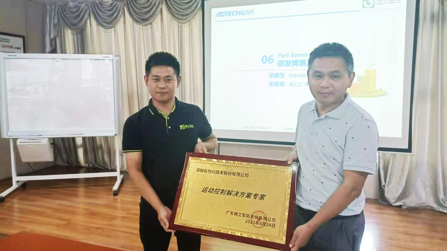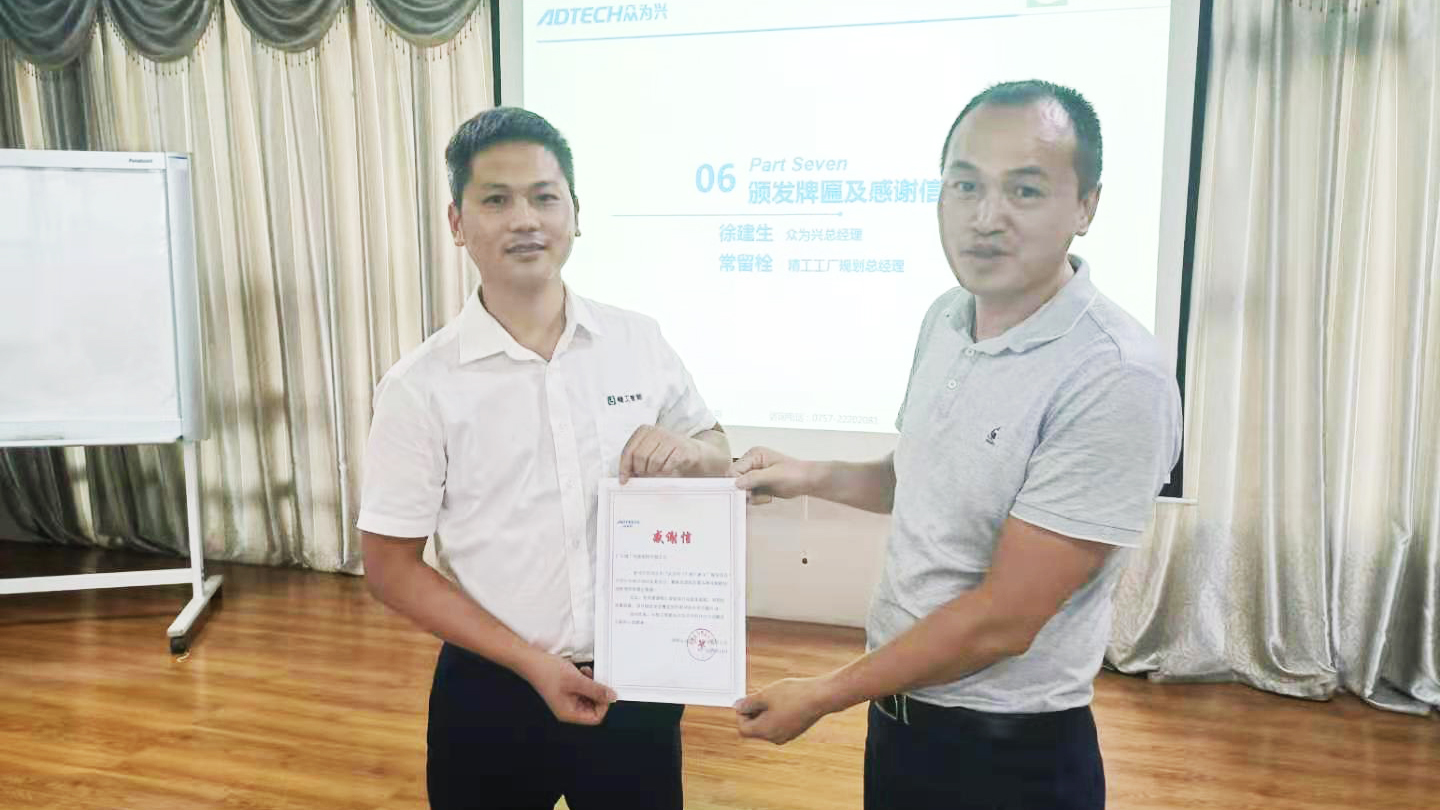 会议最后,精工常留栓老师为众为兴颁发牌匾,众为兴工艺技术部总监张海宁为精工团队送上感谢信,企业双方合影留念。