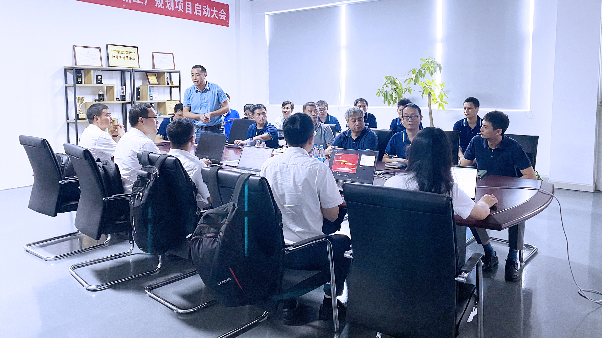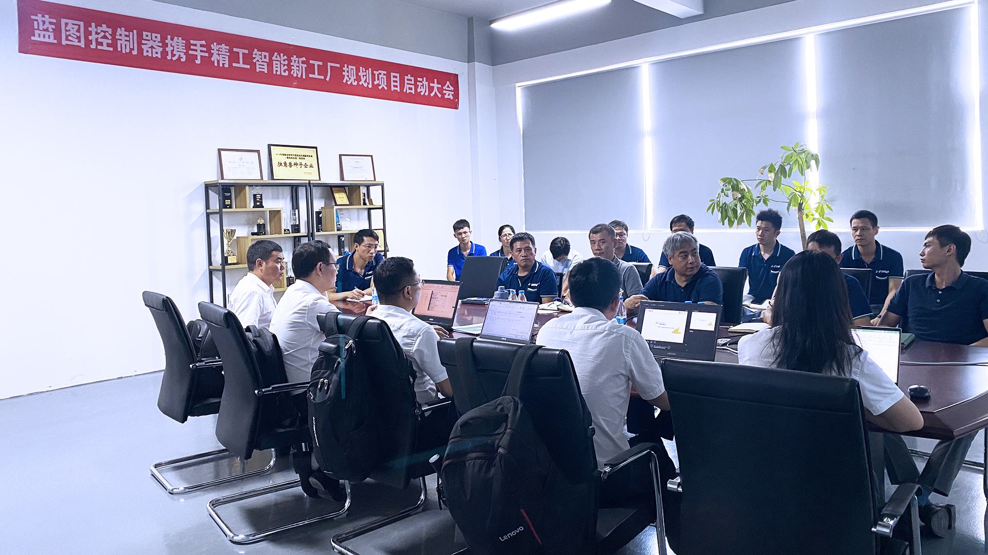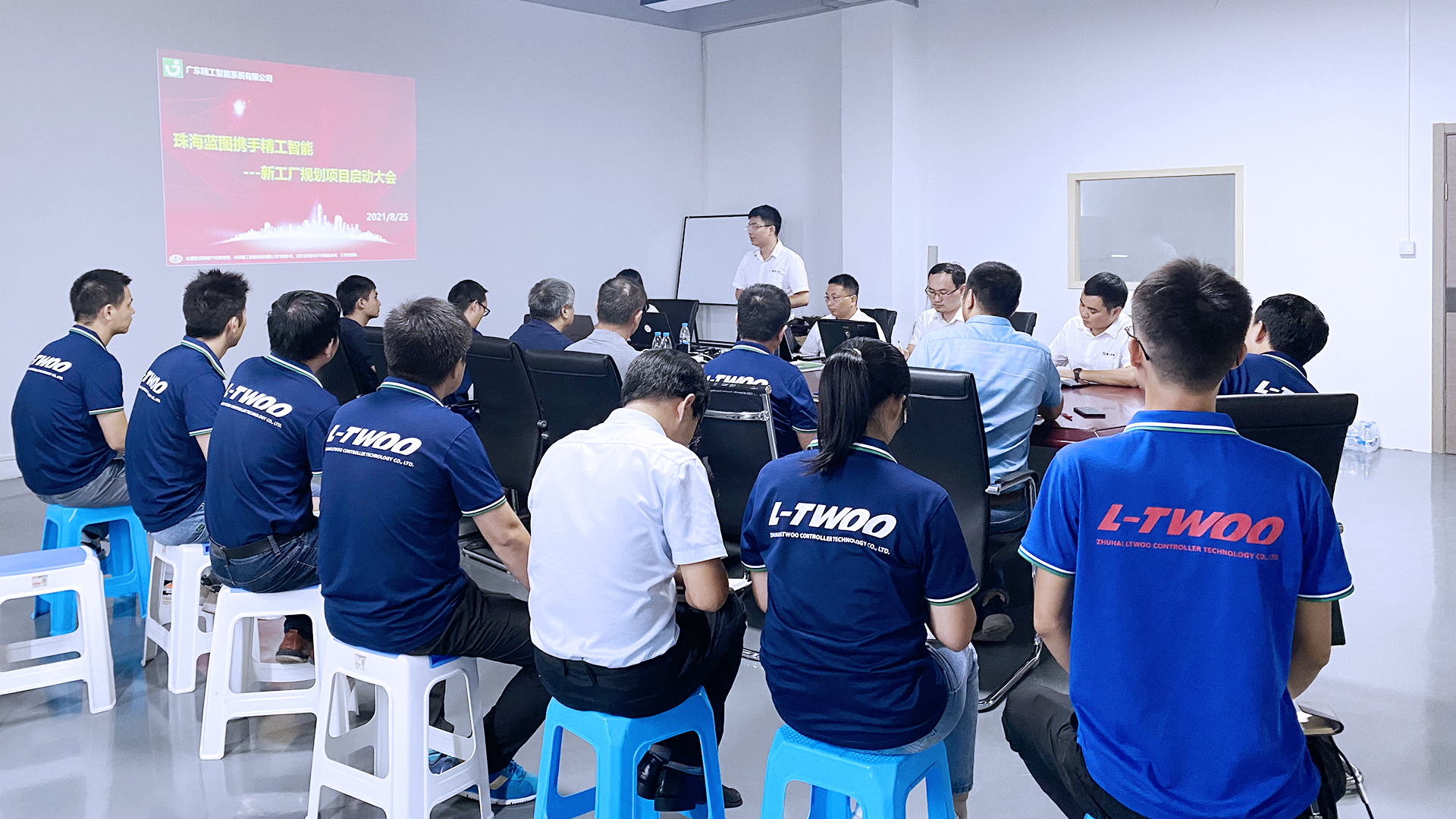 8月25日,珠海蓝图携手精工智能新工厂规划项目启动大会召开,蓝图董事长刘春生、董事长助理曾衡之、厂长毕一兵,精工智能工厂规划事业部副总经理张胜超、袁帅,项目实施负责人陈搴,规划咨询师杨榕、刘朝以及项目组其他成员参加会议。