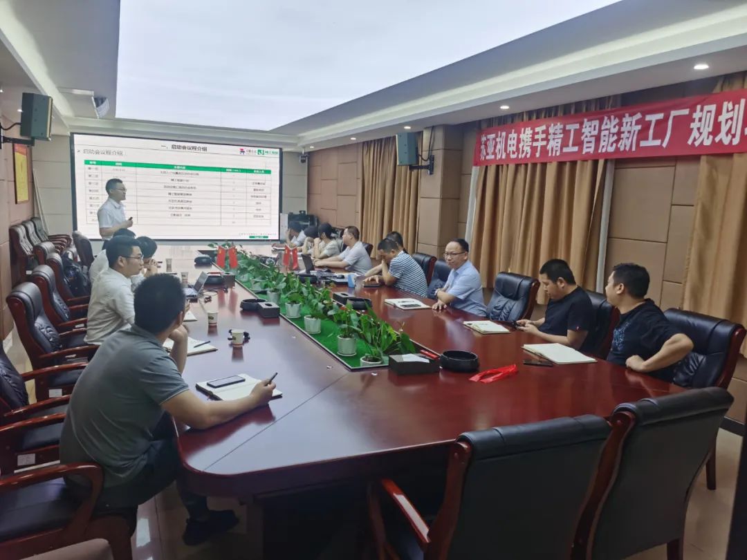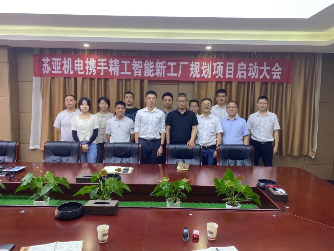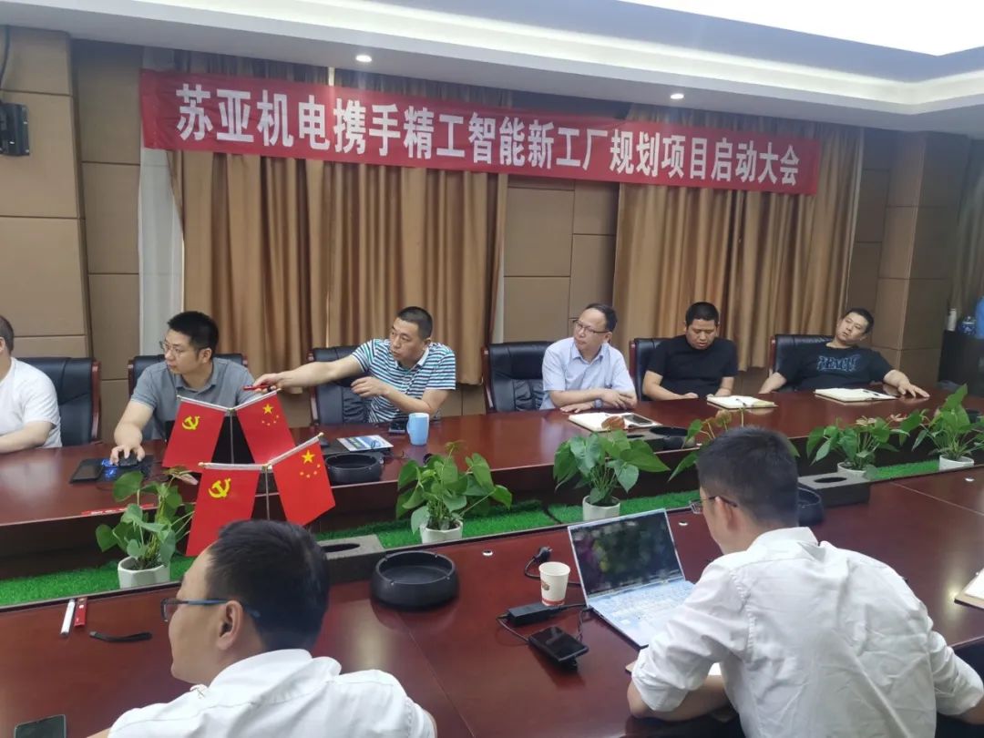 2022年6月14日,安徽苏亚机电制造有限公司(以下简称“苏亚机电”)携手安徽精工智能系统有限公司(以下简称“精工智能”)正式启动智能工厂规划项目,苏亚机电吴总及相关部门主管,精工智能朱总、王总监、黄总监、吴老师和赵老师共同出席此次会议!