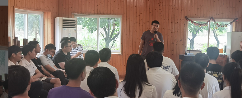 2022年8月份,数字化工厂事业部迎来了26位新员工。他们的到来为公司的发展注入了新活力。为此开展了主题为“缘份相聚,携手未来”系列迎新活动,帮助他们更快、更好地适应新的生活环境,顺利完成由大学生到职场新人的角色转变,也为选择精工智能作为人生转折点的其他小伙伴给予帮助。了解是融入的第一步,为帮助新员工尽快融入大家庭、踏上人生的新起点,运营部、项目经理、项目总监们做好了迎新准备工作。入职当天对新员工进行集中培训,包括公司相关的制度、项目产品、企业文化、管理理念、组织架构等,旨意在帮助新员工尽快熟悉公司制度、了解岗位职责,未来才能更好的投入到实际工作中。2022年8月20日,在“忘我小点”农庄举行迎新活动。活动第一个环节各位新同事做了生动活泼的自我介绍。同时数字化工厂的每位导师和部门总监为新员工分享了作为过来人的经验以及对大家的期许。最后由WMS、MES、APS各部门部门长上台致辞,并给大家提了几点建议:一、树立正确的价值观,锤炼初心,扣好人生第一颗扣子。二、认真学习公司产品,熟能生巧,工作上才能更加得心应手。