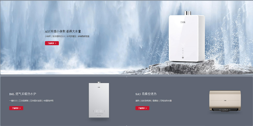 万家乐始于1985年,专注于改善中国家庭热水和厨房生活,产品覆盖热水、厨电、净水、采暖四大品类。包括热水器、油烟机、燃气灶、洗碗机、集成灶、净水器、壁挂炉等。
