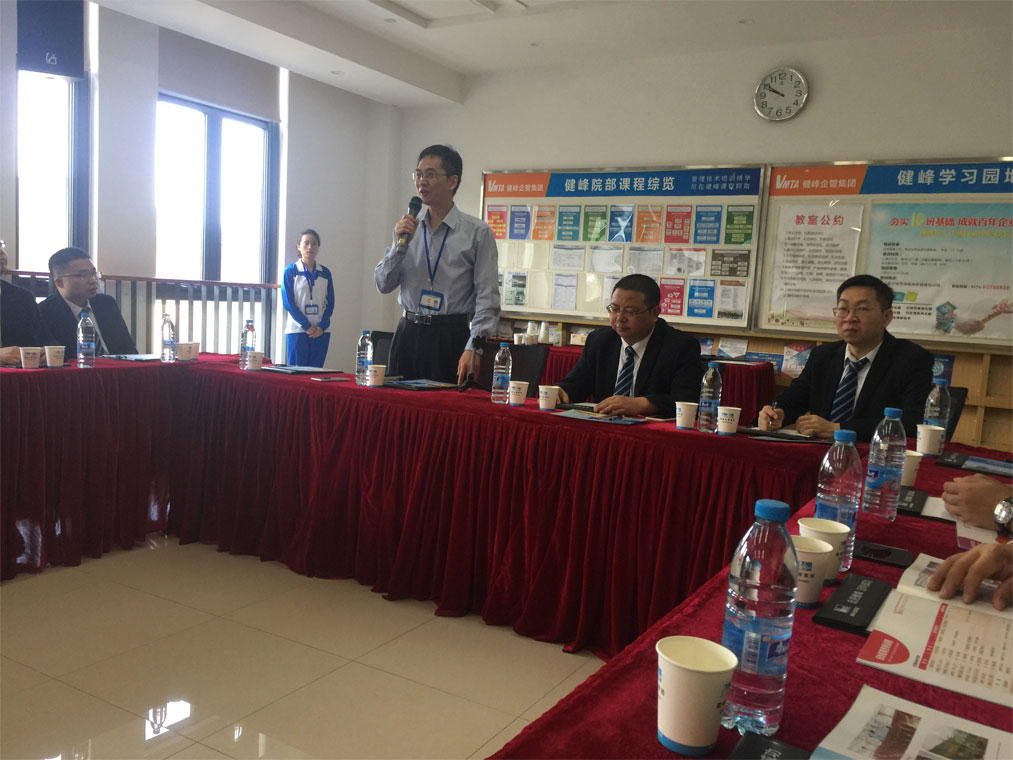 2019年5月30日上午,广东精工智能系统有限公司董事长丁佰胜及精工智能高层管理人员一行22人应健峰企管集团之邀赴健峰管理技术培训学校(第二校区)参观交流。在健峰企管集团董事长叶斯水等人接待与陪同下,参观了健峰集团的历史发展长廊、会议厅、学员生活区、拓展中心等地方,对健峰集团成立三十年以来的发展历史、企业文化、道场拓展中心与生活区的精益先进理念应用进行了深入的了解与交流。