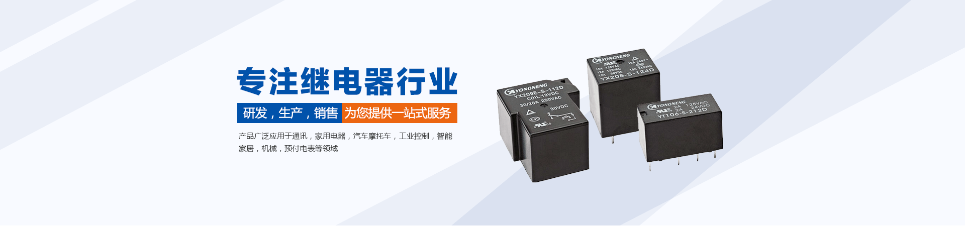 东莞市永能电子有限公司是专业从事继电器研发、生产、销售为一体的高新科技企业。本公司产品广泛应用于家用电器、自动化控制、智能家居及新能源等领域。通过十多年的不懈努力及广大客户的支持与信任,永能的发展速度和配套能力已经达到行业领先水平。