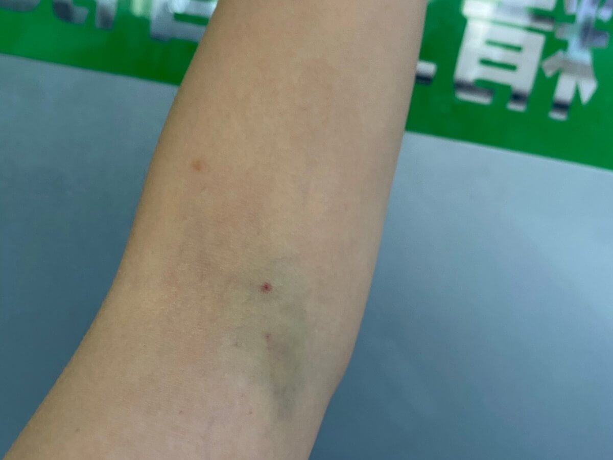 另外,小精灵用自己的血泪教训提醒大家:抽完血一定要正确按压针口,按压时间不够或者按压位置就不对就会出现淤青。如果真的出现淤青也不必太过担心,24小时后用热毛巾进行热敷即可。
